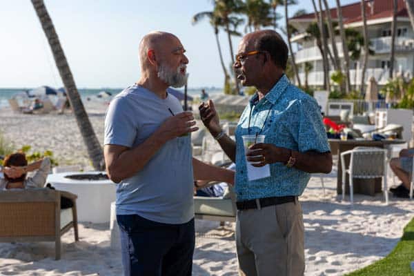Colleagues chatting at the outdoor icebreaker event at the Oasis 2025 Child & Adolescent Psychiatry Conference - Hilton Head, SC