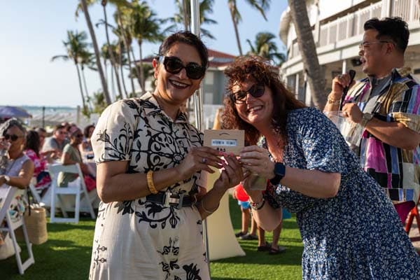 Two attendees of the Oasis 2025 Child & Adolescent Psychiatry Conference - Hilton Head, SC enjoying a cold drink
